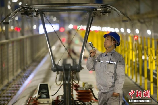 12月4日消息,西安至成都高鐵開通在即,中國鐵路西安局集團(tuán)有限公司西安動車段進(jìn)入忙碌的時期,動車段機(jī)械師們開始對即將在西成線上正式運(yùn)營的動車組列車進(jìn)行全面“體檢”。每組動車組下線入庫后都要進(jìn)行車頂、車內(nèi)、車底以及行車數(shù)據(jù)分析等項目的檢查,確保其“身強(qiáng)體健”地投入到西成高鐵的運(yùn)營中。據(jù)悉,每列動車組檢修下來需要三個半小時,動車組機(jī)械師們每檢查1列動車組,需要行走15列動車組長度的路程。圖為質(zhì)檢員在復(fù)查西成高鐵動車組車頂高壓設(shè)備狀態(tài)。 王曙天 攝