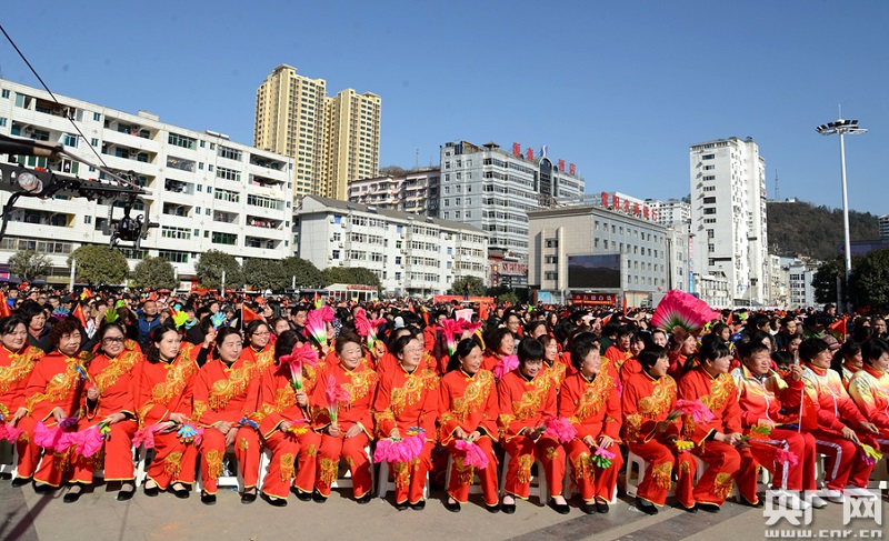 當(dāng)日,演出活動(dòng)在紫陽(yáng)民間文藝社團(tuán)自編自演的《歡天喜地過(guò)大年》歌舞中拉開(kāi)帷幕。由陜西十大陜北民歌手雒勝軍帶來(lái)的男聲獨(dú)唱《東方紅》,唱出了陜西人的豪邁與激情。隨后,二人臺(tái)《五月散花》、相聲《姓名學(xué)》、獨(dú)唱《掀起你的蓋頭來(lái)》、眉戶《大家喜歡》、蒙古長(zhǎng)調(diào)《遼闊的草原》、雙人舞《心心念》、器樂(lè)表演《特級(jí)嗩吶》、小品《兄弟拍電影》以及“周化一魔術(shù)”第三代傳人魏征表演魔術(shù)《五彩繽紛賀新春》,煤礦文工團(tuán)國(guó)家一級(jí)演員、女高音歌唱家羅寧娜演唱的民歌《只有山歌敬親人》等文藝節(jié)目依次亮相,受到了現(xiàn)場(chǎng)觀眾的熱捧。著名評(píng)書(shū)表演藝術(shù)家劉蘭芳表演評(píng)書(shū)《康熙買馬》更是將整場(chǎng)活動(dòng)氣氛推向高潮。演出活動(dòng)在紫陽(yáng)民歌情景歌舞《多彩的紫陽(yáng)》中落下帷幕。