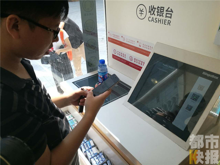 記者在超市里面看到,這間超市的結(jié)構(gòu)和以往的超市并無太大差別,不同的地方就在于收銀臺,變成了一臺機(jī)器。