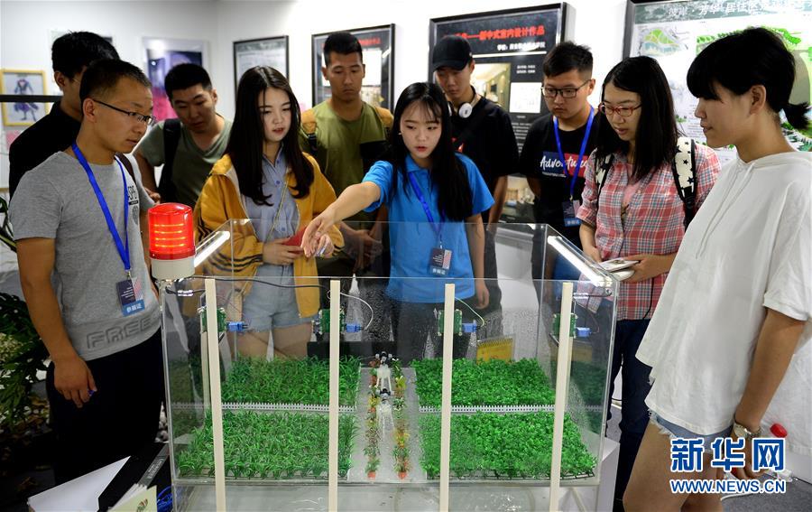 6月9日,來(lái)自西安職業(yè)技術(shù)學(xué)院的學(xué)生在展會(huì)上向參觀者講解自主設(shè)計(jì)的智能溫室大棚系統(tǒng)。當(dāng)日,西安·雁塔大學(xué)生青春設(shè)計(jì)博覽會(huì)暨硬科技創(chuàng)新展在陜西西安大都薈開(kāi)幕,來(lái)自西安市雁塔區(qū)13所大專院校的學(xué)生攜平面設(shè)計(jì)、工藝美術(shù)、影視制作等七大門類1000余件優(yōu)秀設(shè)計(jì)作品及近70件“硬科技”作品參加展示。新華社記者 劉瀟 攝 -