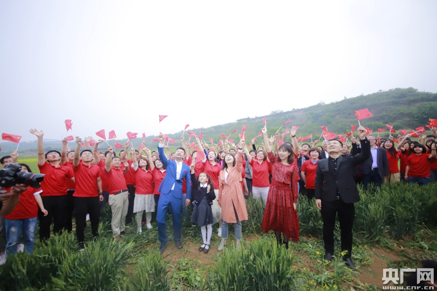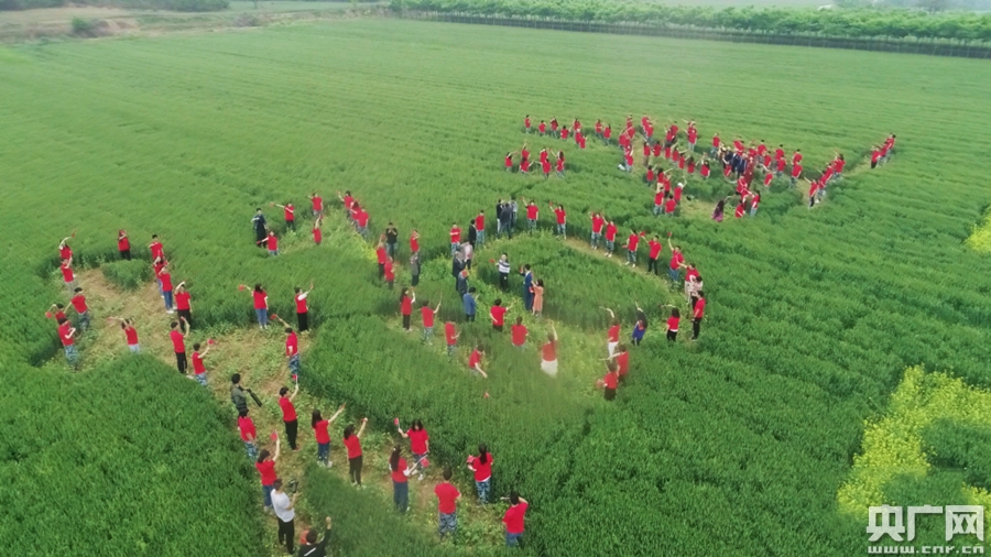 央廣網(wǎng)西安5月7日消息(記者舒隆煥)麥田里用油菜花勾畫(huà)的“楊凌 祝福祖國(guó)”大地景觀格外引人注目,綠油油的麥田與黃澄澄的油菜花在微風(fēng)的吹拂下遙相呼應(yīng)......5月5日,一場(chǎng)“我愛(ài)我的祖國(guó)”快閃活動(dòng)在陜西省楊凌示范區(qū)上演,近200名農(nóng)科專家、職業(yè)農(nóng)民、農(nóng)科專業(yè)的大學(xué)生等一起高聲合唱,優(yōu)美的旋律回蕩在廣袤的麥田里,祝福祖國(guó)。央廣網(wǎng)發(fā) 楊凌示范區(qū)宣傳部供圖 -