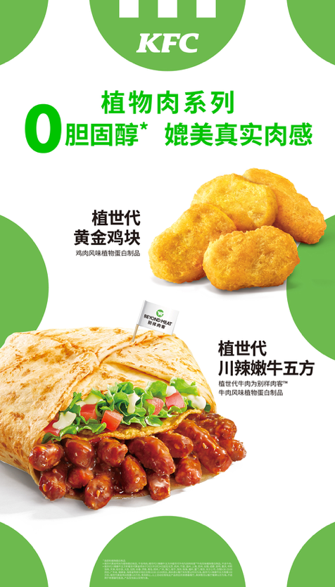 作為率先采用植物蛋白制品的餐飲品牌之一,這個(gè)夏天,肯德基食界新能源“植世代系列”再上新,與全球植物肉先鋒品牌別樣肉客(Beyond Meat)繼續(xù)合作,將經(jīng)典的川辣嫩牛五方進(jìn)行了“植物級(jí)”升級(jí)后全新登場(chǎng)。
