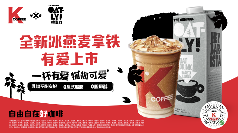 聯(lián)手“植物蛋白”行業(yè)巨頭——全球燕麥植物基領(lǐng)導(dǎo)品牌OATLY噢麥力,肯德基 KCOFFEE以“一杯有愛 物物可愛”為主題,全新推出的冰燕麥拿鐵新品于5月24日全新上市。