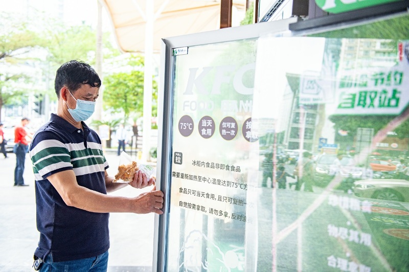 為響應政府關(guān)于制止餐飲浪費行為的倡議,2020年起,肯德基推出“食物銀行”公益項目,將當天餐廳尚未售出且在保質(zhì)期內(nèi)的余量食物細心打包、收集冷凍,通過在餐廳門口設置“勤儉節(jié)約自取站”的形式,免費提供給有需要的人,減少“舌尖上的浪費”。2020年8月,在深圳市商務局的指導下,首批共6家肯德基“食物銀行”在深圳上線。首月就有2001袋食物被領(lǐng)取,利用率高達93%。
