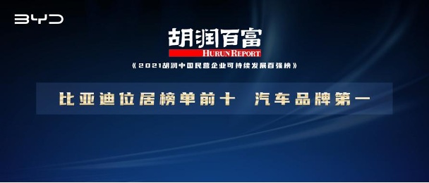 《2021胡潤中國民營企業(yè)可持續(xù)發(fā)展百強(qiáng)榜》比亞迪位列汽車品牌第一
