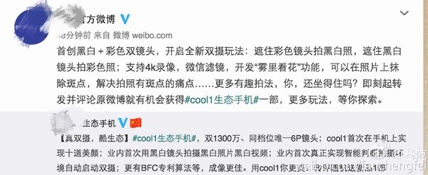 2.某國(guó)產(chǎn)品牌,如此介紹自己的雙攝:“遮住彩色鏡頭拍黑白照,遮住黑白鏡頭拍彩色照”——我滴個(gè)神啊,在手機(jī)菜單里做個(gè)切換功能有那么難嗎,想拍彩色照片還得手動(dòng)遮住黑白鏡頭,真是智商感人。