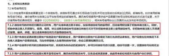 作為目前流行的支付工具之一,微信方面則有著不同的聲音。在微信的注冊協(xié)議中,并沒有明確關(guān)于用戶財產(chǎn)處理的相關(guān)條款。不過,在“主權(quán)利義務(wù)條款”中規(guī)定: