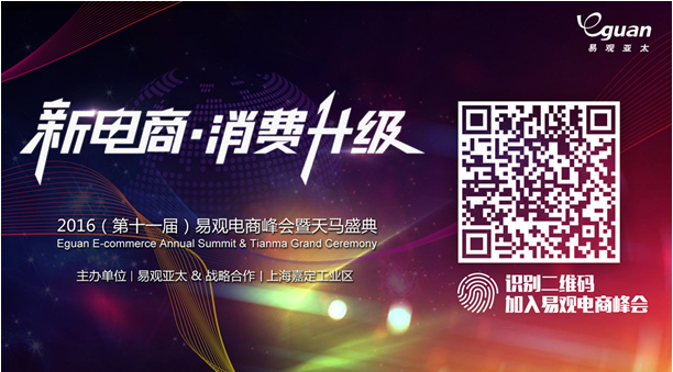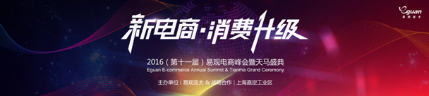 新電商 消費升級——2016(第11屆)易觀電商峰會期待您的加入,讓我們共同成長成為消費領(lǐng)域的領(lǐng)跑者,實現(xiàn)新電商加速,給力消費升級!