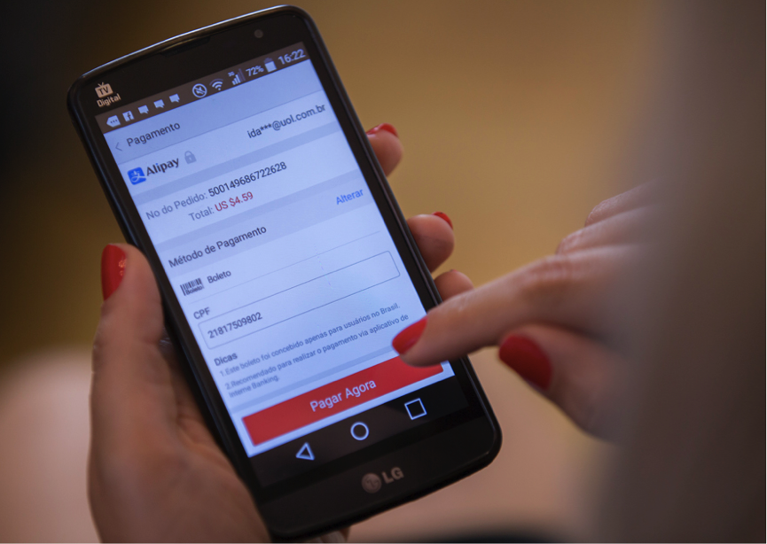 Ana沒(méi)有國(guó)際信用卡,她通過(guò)支付寶,用一種叫Boleto的當(dāng)?shù)刂Ц斗绞礁犊。每次下單后,Ana會(huì)打印一個(gè)由系統(tǒng)生成號(hào)碼或條碼的小票,去附近便利店或者ATM機(jī)器上進(jìn)行現(xiàn)金支付。支付后,錢(qián)將通過(guò)支付寶匯款到中國(guó)的賣(mài)家,完成付款過(guò)程。