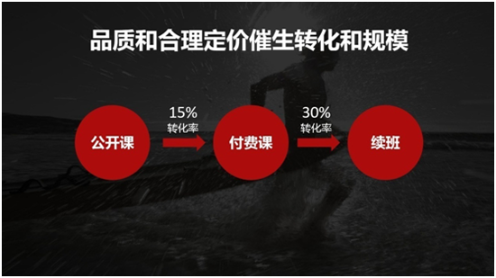 周楓提出:在15年到16年,在線教育領(lǐng)域出現(xiàn)了一個(gè)新的產(chǎn)品模式,即以“內(nèi)容驅(qū)動(dòng)的在線教育模式”。這個(gè)模式以定價(jià)相對(duì)合理、標(biāo)準(zhǔn)化和大量發(fā)行的付費(fèi)課程為核心,為用戶提供最高品質(zhì)的直播課、錄播課等多種形式,并附帶有一系列內(nèi)容周邊產(chǎn)品,比如高質(zhì)量的教輔產(chǎn)品、相配套的APP等。