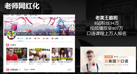 名師網(wǎng)紅化成為趨勢(shì),很多老師自帶粉絲。有道精品課平臺(tái)邀請(qǐng)了多名教育“網(wǎng)紅”,這其中包括有道考神團(tuán)隊(duì)的名師趙建昆,還有坐擁34萬(wàn)粉絲的口語(yǔ)大咖、B站紅人“王霸膽”。