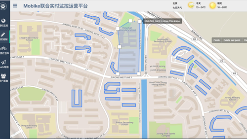 摩拜單車(chē)后臺(tái)可設(shè)置虛擬電子圍欄,引導(dǎo)用戶(hù)停車(chē)