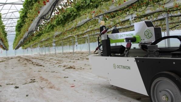 這有趣的畫面是比利時(shí)公司Octinion的一場實(shí)驗(yàn),它認(rèn)為,這套系統(tǒng)能夠取代傳統(tǒng)的草莓種植和收割模式。