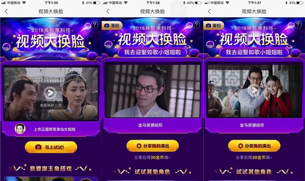 值得一提的是,在此次“天貓雙11狂歡夜”主會場,優(yōu)酷“視頻大換臉”的活動讓全民參與大劇熱綜的“拍戲”體驗(yàn)中,徹底過足與喜愛明星“飆戲”的癮。