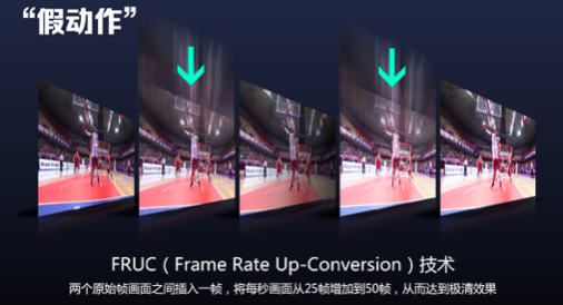 這利用了超高幀率算法中的FRUC(Frame Rate Up-Conversion)技術(shù),通過(guò)人工智能預(yù)測(cè)視頻中所有物體的運(yùn)動(dòng)方向和軌跡,在保證顏色、亮度和位置的情況下,無(wú)中生有地創(chuàng)造新畫(huà)面,提升清晰度和流暢度,給用戶(hù)帶來(lái)前所未有的視覺(jué)感受。