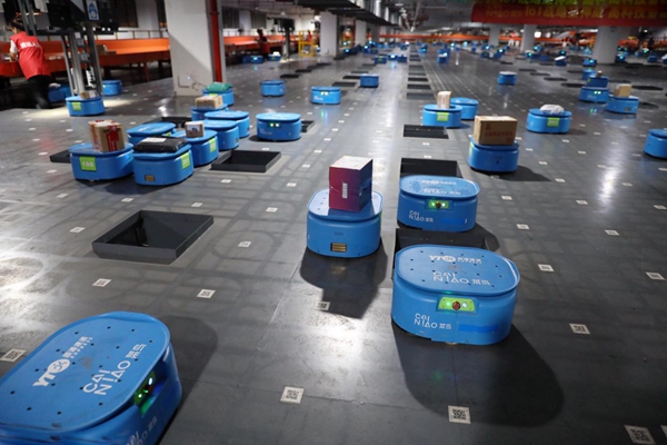 圖說:天貓雙11前夕,菜鳥與圓通速遞聯(lián)合啟用的超級機器人分撥中心