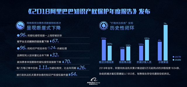 (圖說:2018阿里巴巴知識產(chǎn)權(quán)保護(hù)年報(bào)相關(guān)數(shù)據(jù)。)