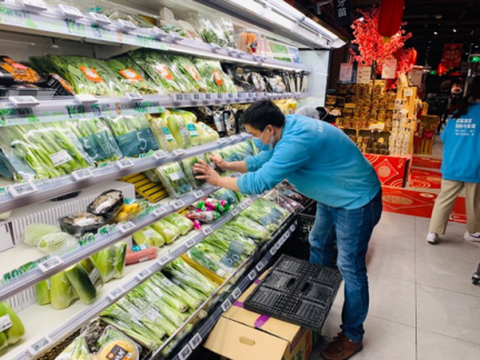 (武漢盒馬門(mén)店積極補(bǔ)貨保障供給。)