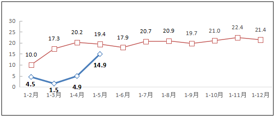 數(shù)據(jù)顯示,1-5月,我國規(guī)模以上互聯(lián)網(wǎng)和相關(guān)服務(wù)企業(yè)(簡稱互聯(lián)網(wǎng)企業(yè))完成業(yè)務(wù)收入4719億元,同比增長14.9%,增速較1-4月回升10個百分點,仍低于去年同期4.5個百分點。