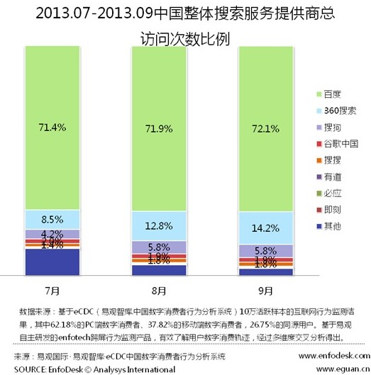易觀最新搜索份額數(shù)據(jù):百度72.1%居首位