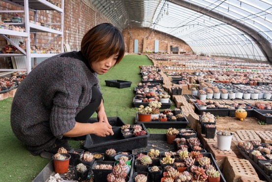 圖/馬迎春在大棚里照料多肉