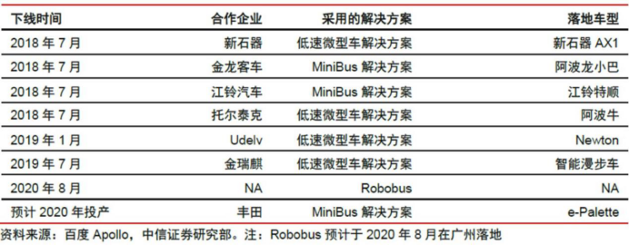 在自主泊車(chē)之外,百度在與車(chē)廠的合作中,開(kāi)啟了一條針對(duì)2B園區(qū)的無(wú)人駕駛解決方案,形成了以通勤、巴士、城市服務(wù)等多樣的商業(yè)化場(chǎng)景,即低速微型車(chē)解決方案應(yīng)用。