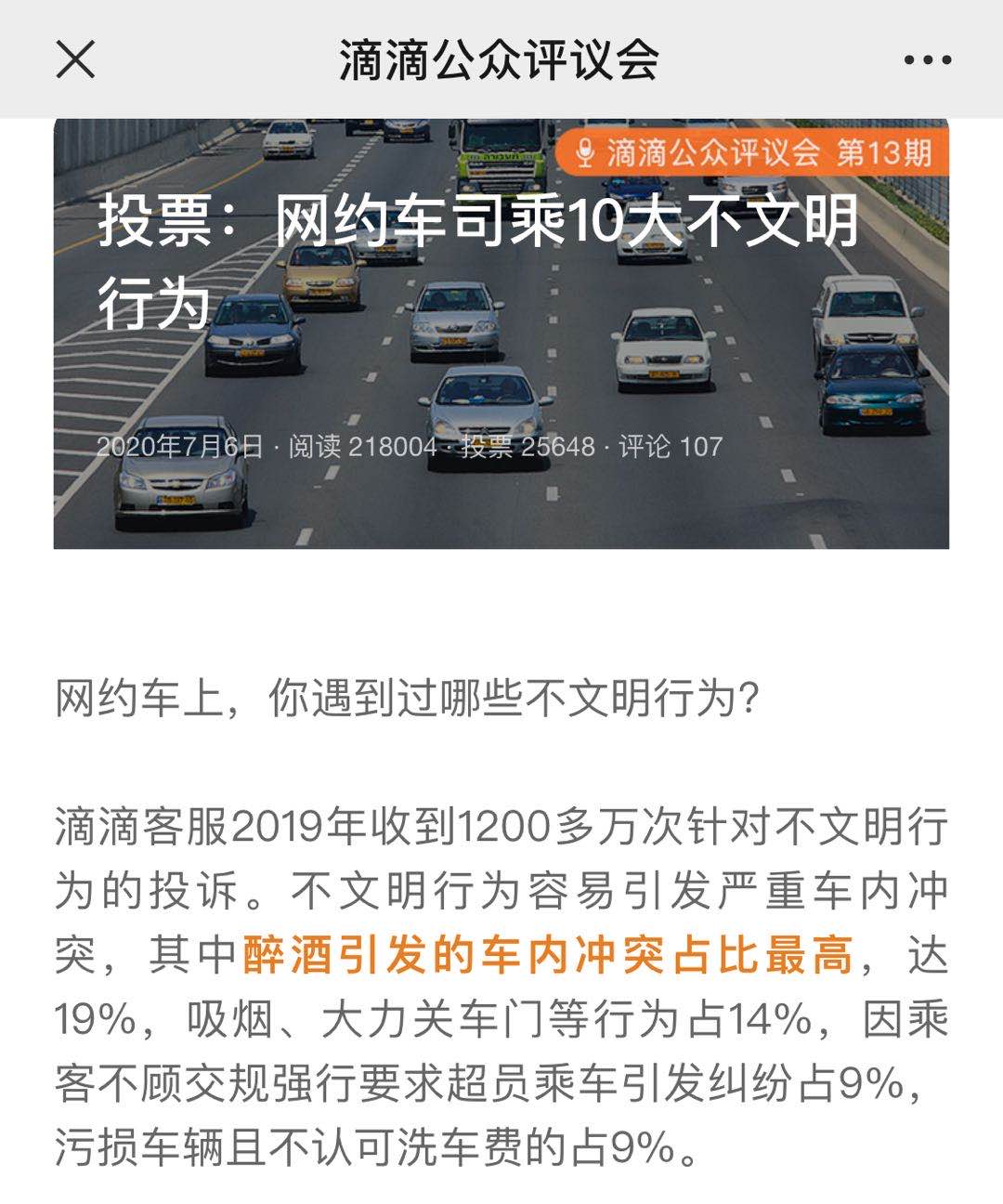 央廣網(wǎng)北京7月7日消息 滴滴公眾評(píng)議會(huì)第十三期于昨日(6日)上線,本期發(fā)起“網(wǎng)約車司乘10大不文明行為”的投票和討論,此舉將敦促平臺(tái)有針對(duì)性的優(yōu)化平臺(tái)規(guī)則和治理方向,同時(shí)也向公眾征集如何推動(dòng)網(wǎng)約車文明建設(shè)的建議。