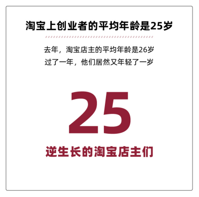而淘寶之所以成為年輕人的生活習慣,是因為這是一個店主平均年齡只有25歲的平臺,要知道,去年淘寶上店主的平均年齡還是26歲,過了一年,居然還小了一歲。生動解釋了一個詞——逆生長。他們最懂年輕人,因為他們就是年輕人本人。