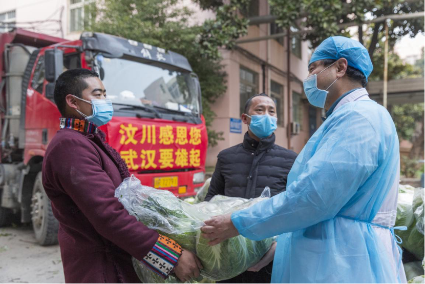 2008年汶川地震后,武鋼總醫(yī)院醫(yī)療隊(duì)到龍竹村參與救援,無一死亡、無一感染、無一后遺癥。疫情發(fā)生后,為讓一線抗疫人員吃上最新鮮的蔬菜,龍竹村村民自發(fā)捐贈(zèng)了100噸蔬菜,裝滿了整整6輛大貨車,從汶川縣浩浩蕩蕩地開進(jìn)了武漢城區(qū)。這一切,只為報(bào)答12年前的這份濃濃恩情。