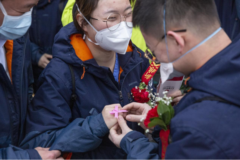 今年3月,在武漢方艙醫(yī)院休艙當(dāng)日,一名新冠肺炎康復(fù)患者和照顧他的醫(yī)務(wù)人員緊緊擁抱在一起。原本出院是一件開心的事情,可歷經(jīng)幾十天的朝夕相處,所有人都對(duì)這場(chǎng)離別依依不舍。