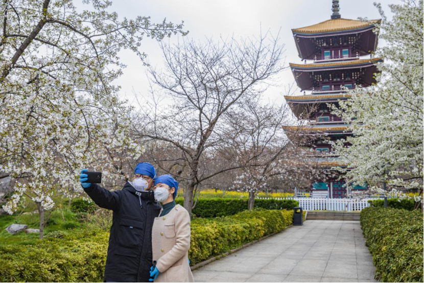照片中,還有一對(duì)身穿工作服的夫妻,在東湖櫻花園賞櫻。他們都是武漢中心醫(yī)院的醫(yī)務(wù)工作者,也是“曾經(jīng)的吹哨人”李文亮的同事。經(jīng)過了三個(gè)月沒有一天休息的持續(xù)工作,這對(duì)夫妻終于協(xié)調(diào)出30分鐘的時(shí)間,走出醫(yī)院閑逛一下,看看櫻花。然而,他們身上的工作服卻依然不敢脫下,“萬一醫(yī)院臨時(shí)有事,我們就能第一時(shí)間趕到!边@是一份國(guó)家利益高于一切的偉大責(zé)任。