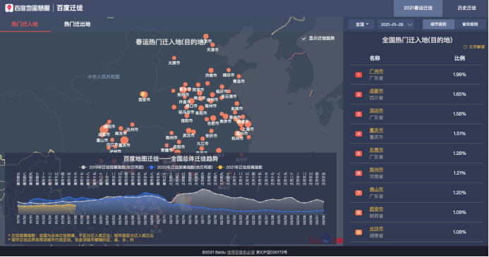 (百度地圖遷徙大數(shù)據(jù)平臺(tái)全國(guó)熱門遷入地)
