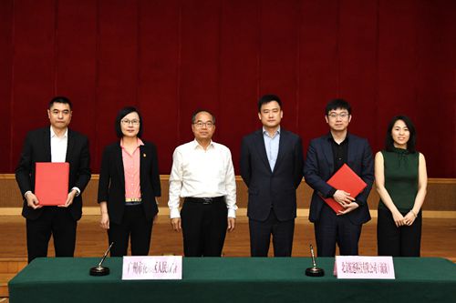 。ê灱s儀式現(xiàn)場(chǎng),從左至右依次為花都區(qū)副區(qū)長(zhǎng)鄭重民,花都區(qū)委副書(shū)記、區(qū)長(zhǎng)邢翔,廣州市政協(xié)副主席、花都區(qū)委書(shū)記黃偉林,滴滴出行CTO兼自動(dòng)駕駛公司CEO張博,滴滴自動(dòng)駕駛公司COO孟醒)