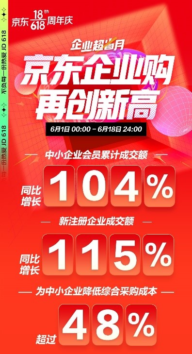 作為深度鏈接消費端和產(chǎn)業(yè)端的重要平臺,京東618持續(xù)優(yōu)化從消費端到供給端的成本、效率和體驗,讓京東618成為產(chǎn)業(yè)升級的重要節(jié)點。京東企業(yè)購也聯(lián)合百家TOP品牌和生態(tài)伙伴,為中小企業(yè)帶來一場年中采購熱潮。數(shù)據(jù)顯示,6月1-18日,京東企業(yè)購成交額同比增長104%,新注冊企業(yè)成交額同比增長115%,通過企業(yè)專享價、專屬優(yōu)惠券、專屬運費券等多類企業(yè)會員權(quán)益累計為中小企業(yè)降低48%的綜合采購成本。