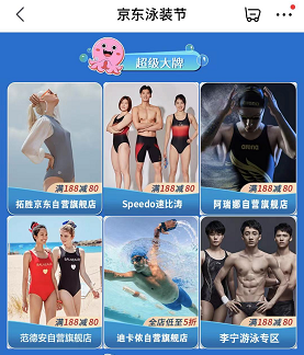 除了線下豐富多樣的活動外,京東運動在線上也同步帶來了海量爆款和專屬福利。7月21日,京東運動將繼續(xù)加碼泳裝品類福利,開啟線上大促活動,消費者在當天將可享受滿188減80的誘人福利,迪卡儂等品牌更是低至5折,專業(yè)運動裝備、休閑玩趣用品應有盡有。作為本次京東泳裝節(jié)的合作品牌,李寧將帶來男士游泳包豪華套組,泳褲、泳鏡、泳帽配齊僅需139元,一包在手下水無憂;速比濤也推出日本原裝進口爆款泳鏡,具備高清防霧防水防紫外線大視野優(yōu)勢,任何水上運動都能滿足,136元即可秒殺;此外,范德安推出的連體女士泳衣也登上爆款榜單,作為眾多明星青睞的高端女士泳衣品牌,遮肚、顯瘦、聚攏、防曬設計與輕薄面料質(zhì)感完美結(jié)合,成為女性消費者的熱門選擇。