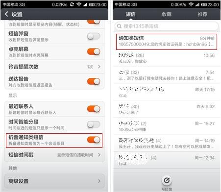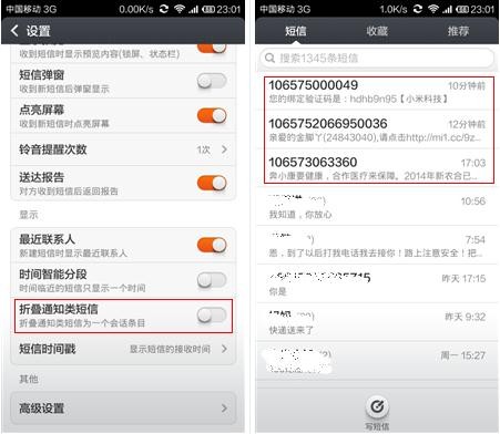 小米3 MIUI V5折疊通知類短信的使用技巧