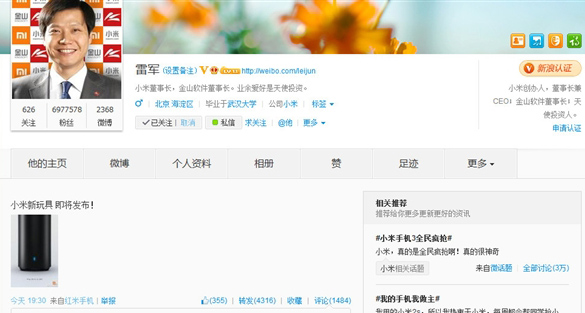 據(jù)報道,昨日晚間,小米董事長雷軍通過新浪微博透露11月20日將發(fā)布”新玩具”。內(nèi)部人士透露,這個新玩具就是小米路由器!靶∶茁酚善鲗⒕o緊圍繞小米手機(jī)—MIUI—盒子產(chǎn)業(yè)鏈構(gòu)建,支持2.4GHz和5.0GHz雙頻,售價不超過100元。”上述人士透露。