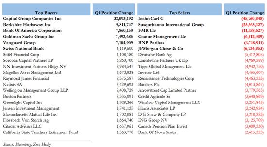 “空軍”力量則以華爾街“狼王”伊坎為首,一季度拋售4576萬股;其次是海納國際集團(Susquehanna International Group),減持2596萬股;蘋果大股東富達基金減持1135萬股,位居第三;隨后是法巴銀行和摩根大通。