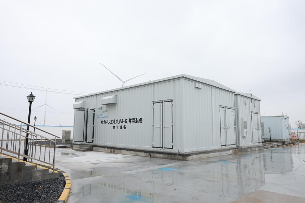 為破解難題,國網(wǎng)江蘇電力有限公司聯(lián)合中國東方電氣集團(tuán)有限公司等單位,歷時(shí)多年攻關(guān),研發(fā)成功4.5兆瓦并網(wǎng)穩(wěn)定器,安裝在海上風(fēng)電集群并網(wǎng)升壓站內(nèi)。它采用“電動機(jī)—發(fā)電機(jī)”雙機(jī)組結(jié)構(gòu),海上風(fēng)電先驅(qū)動電動機(jī),再由電動機(jī)帶動發(fā)電機(jī)同步并網(wǎng),用機(jī)械結(jié)構(gòu)給新能源補(bǔ)上“慣性短板”,賦予它傳統(tǒng)發(fā)電機(jī)的穩(wěn)定特性。
