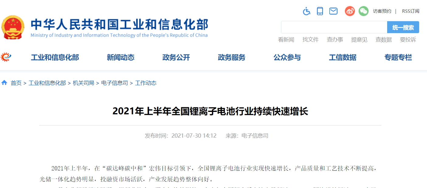 央廣網(wǎng)北京7月30日消息(記者 萬(wàn)玉航)據(jù)工信部電子信息司消息,2021年上半年,在“碳達(dá)峰碳中和”宏偉目標(biāo)引領(lǐng)下,全國(guó)鋰離子電池行業(yè)實(shí)現(xiàn)快速增長(zhǎng),產(chǎn)品質(zhì)量和工藝技術(shù)不斷提高,光儲(chǔ)一體化趨勢(shì)明顯,投融資市場(chǎng)活躍,產(chǎn)業(yè)發(fā)展趨勢(shì)整體向好。