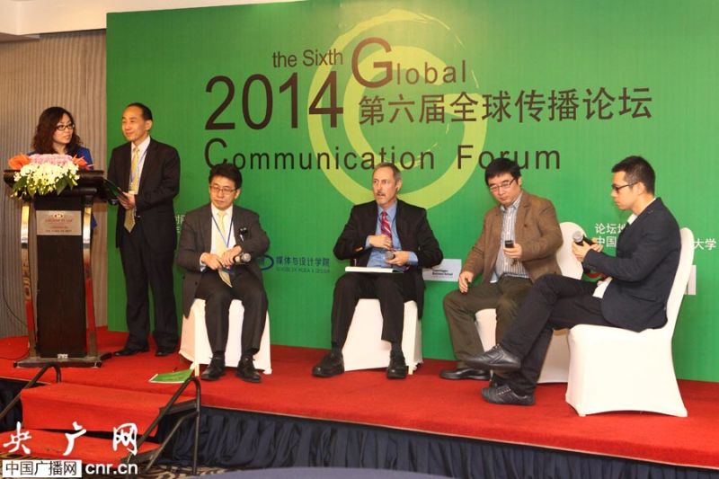 央廣網(wǎng)上海11月9日消息 (記者王蕊 謝夢瑤 涂傲 張巧雨)2014第六屆全球傳播論壇:“互聯(lián)網(wǎng)與中國20年:變革與創(chuàng)新”在上海開幕。在中國廣播網(wǎng)副總裁伍剛,與全球傳播研究院副院長王昊青的主持下,美國西北大學(xué)教授帕夫利克、日本東京大學(xué)副校長吉見俊哉、新浪微博用戶運(yùn)營總監(jiān)劉新征、上海文廣集團(tuán)陳思劼討論了中美日互聯(lián)網(wǎng)創(chuàng)新服務(wù)模式。