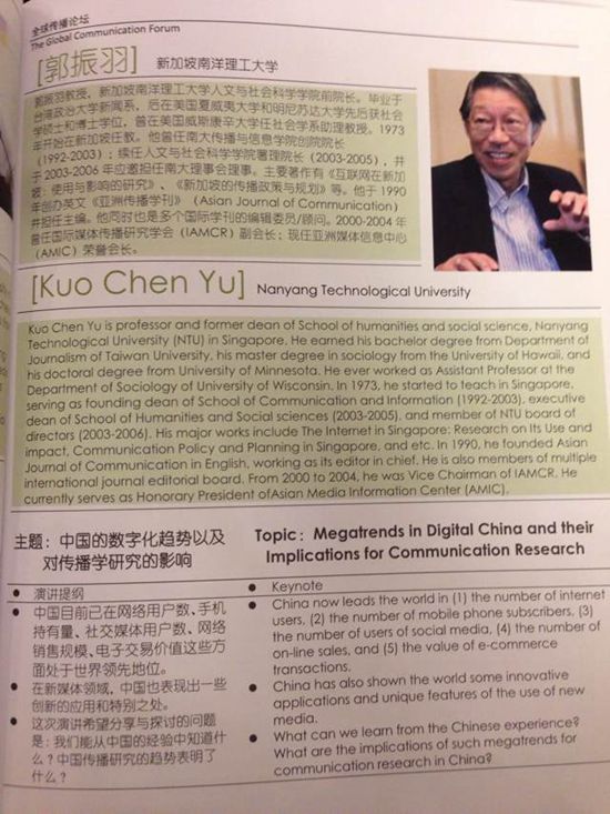 央廣網(wǎng)上海11月9日消息(記者王蕊 謝夢瑤 涂傲)2014第六屆全球傳播論壇“互聯(lián)網(wǎng)與中國20年:變革與創(chuàng)新”在上海開幕。新加坡南洋理工大學(xué)教授郭振羽發(fā)表題為《中國的數(shù)字化趨勢以及對傳播學(xué)影響的研究》的演講。