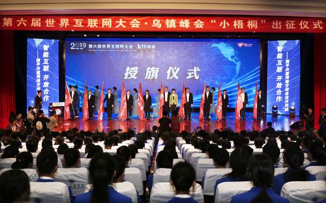 “我承諾:盡己所能,幫助他人,服務(wù)大會(huì),踐行志愿服務(wù)宗旨,弘揚(yáng)志愿服務(wù)精神……”第六屆世界互聯(lián)網(wǎng)大會(huì)即將于10月20日至22日在浙江桐鄉(xiāng)烏鎮(zhèn)舉行。今天,1000名服務(wù)大會(huì)的青年志愿者在桐鄉(xiāng)技師學(xué)院舉行出征儀式。