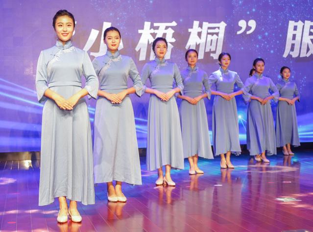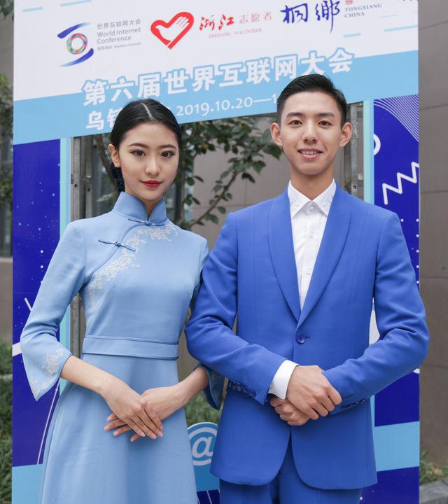 出征儀式上, 發(fā)布并展示了本次世界互聯(lián)網(wǎng)大會(huì)的志愿者服裝,服裝設(shè)計(jì)大體上沿襲了往屆服裝藍(lán)色主基調(diào),著重以江南水鄉(xiāng)的烏檐青瓦和中華傳統(tǒng)的瑞獸祥獅為設(shè)計(jì)靈感,通過(guò)采擷多元豐富的傳統(tǒng)文化與現(xiàn)代互聯(lián)網(wǎng)氣息融合,輔以精致的匠心制作而成!皻v史與現(xiàn)實(shí)交匯,古韻與時(shí)尚共榮”“融合共生”的設(shè)計(jì)理念與本屆峰會(huì)“智能互聯(lián)”“開放合作”的主題遙相呼應(yīng)。