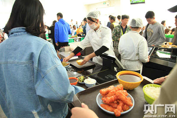“原來同學們買菜、買飯、買湯可能要排三四次隊,而現(xiàn)在可直接到窗口買飯,最后在售餐結算系統(tǒng)一起結賬!崩盍琳f。