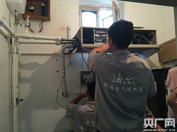 在南蔡村鎮(zhèn)三里淺村的農(nóng)戶家,工作人員正在安裝空氣源熱泵,這種“煤改電”設(shè)備不僅環(huán)保,更能幫農(nóng)戶節(jié)省近四分之一的能耗。在施工現(xiàn)場(chǎng),海爾空調(diào)電子天津區(qū)經(jīng)理賀廣延說(shuō),對(duì)于煤改清潔能源,政府給予農(nóng)戶很大的補(bǔ)貼,還沒有污染,農(nóng)戶都非常支持。