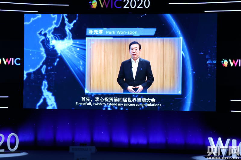 韓國首爾市市長樸元淳云致辭(央廣網(wǎng)記者 劉陽 攝)