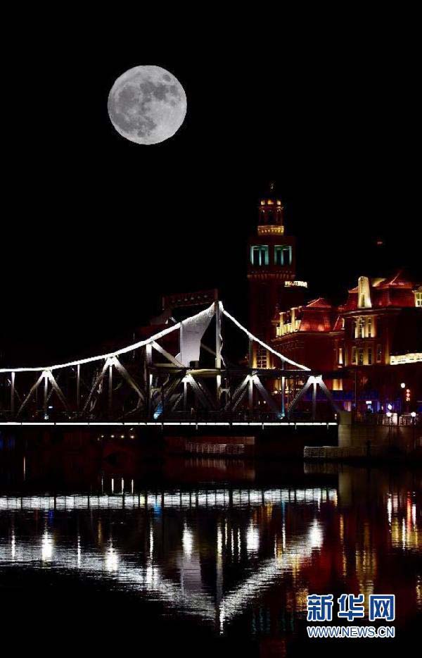 68年來最大的“超級月亮” 皎潔月光耀海河