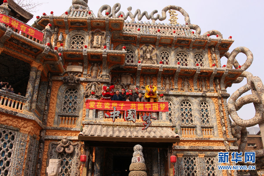 2月17日,天津市瓷房子博物館的三個大字“中國夢”格外搶眼,據(jù)介紹,這是由216塊宋元時期的鈞瓷碎片精心制作而成的。2月17日,農(nóng)歷正月初二,津城迎來“不放鞭炮”的春節(jié),假期出游成了市民們更加健康的休閑方式。一大早天津市瓷房子博物館門前就排起了長隊(duì),昨天是2018年開館首日,瓷房子準(zhǔn)備了精彩的舞獅表演給游客們送去新春的祝福。(新華網(wǎng)張博攝)