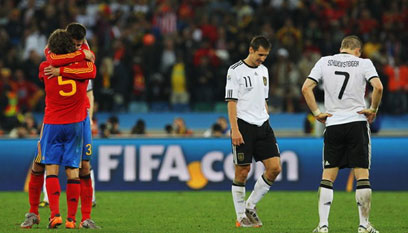 世界杯半決賽第2場在德班球場展開角逐,西班牙1比0力克德國,成為歷史上第12支打進決賽的球隊